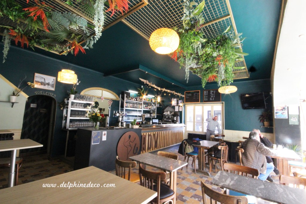 Plafond de plantes et harmonisation du lieu chez : Bar Le Rendez Vous à Sault – Vaucluse 84.